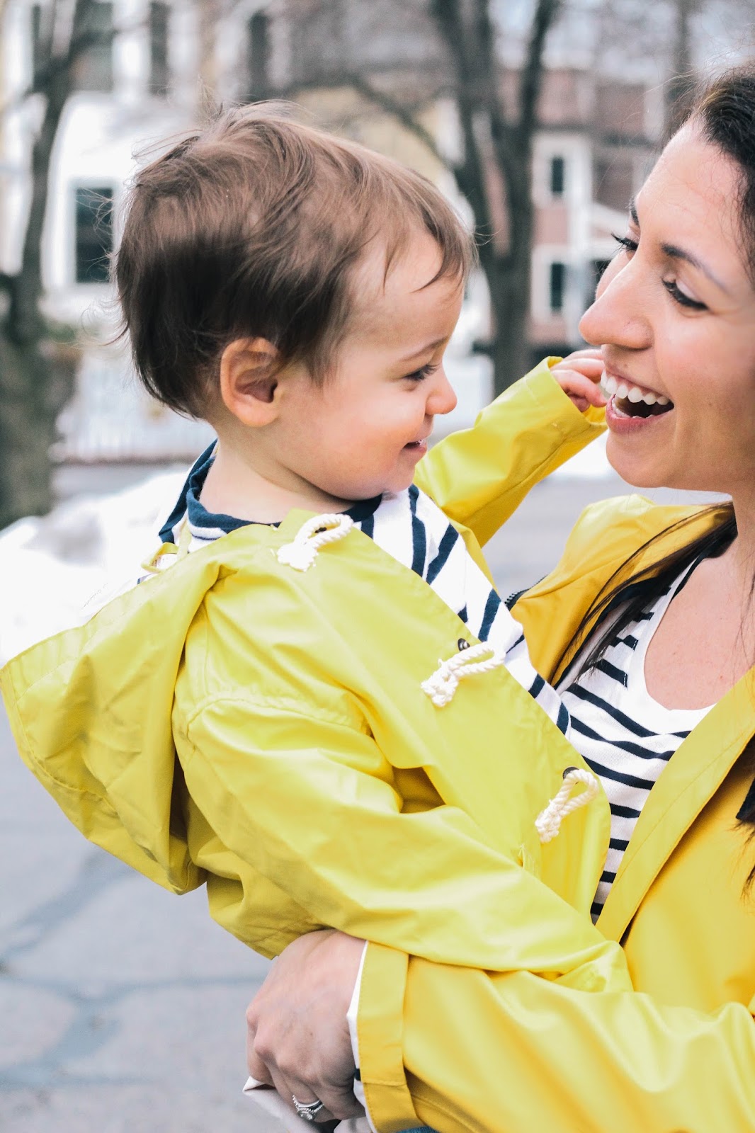 Even before I was pregnant I used to imagine twinning with my little girl. Since I grew up with a sister and am the oldest of a large extended family of mostly girls, the notion that I could possibly give birth to a boy pretty much eluded my mind. But on the day Bennett was born and I heard “It’s a boy” in the delivery room I felt nothing but excitement. Although bringing up a little boy was unfamiliar and slightly frightening to me at first, everything has felt surprisingly natural so far. And although I’ve accepted the fact there aren’t going to be many times Bennett and I could pull off matching outfits, I thought a classic yellow raincoat and wellies on a rainy Boston day could be an exception.